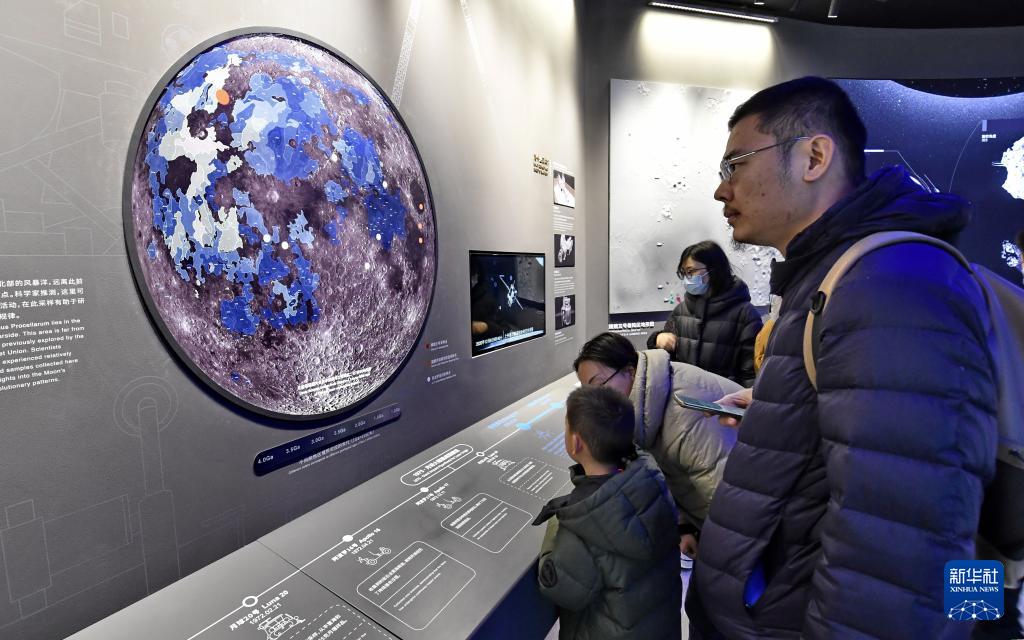 2025年1月1日,在北京天文馆,游客在参观“问月——中国探月工程嫦娥五号月球样品展”。