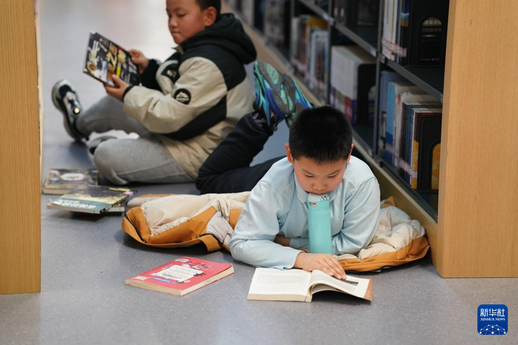 2025年1月1日,小读者在陕西省图书馆高新馆区阅读。