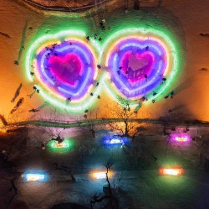 1月2日,在哈尔滨市兆麟公园,游客在冰灯艺术游园会园区内一处蛇形冰灯附近游玩。