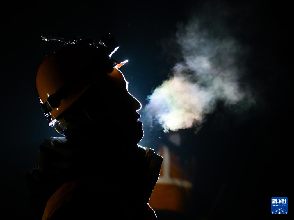2024年2月6日,中国铁路青藏集团有限公司西宁工务段湟源桥隧车间职工在位于青海省西宁市湟源县的老虎沟隧道检查拱顶。老虎沟隧道平均海拔3100米,每年冬季,渗漏的地下水在隧道内容易冻结成冰柱和冰锥。为确保春运期间行车安全,湟源桥隧车间职工及时进行除冰工作。