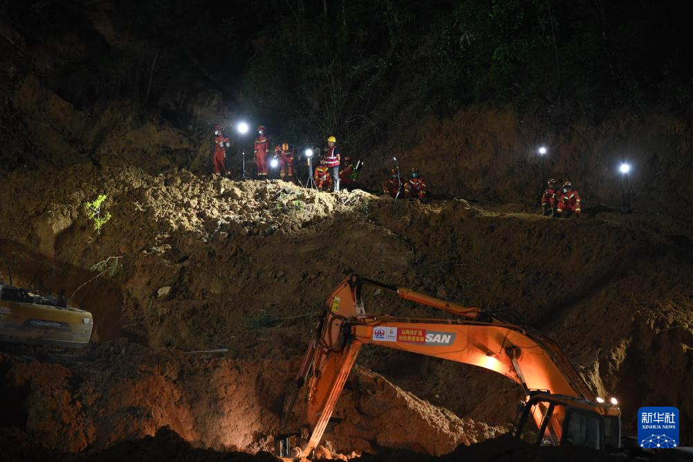 2024年5月2日,救援力量在广东省梅州市梅大高速茶阳路段塌方灾害现场作业。5月1日2时10分许,广东梅州市梅大高速茶阳路段发生塌方灾害,造成重大人员伤亡。