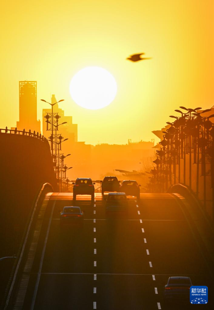 2024年3月20日在北京木樨地桥附近拍摄的“悬日”。