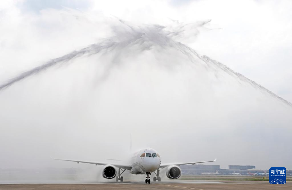 2024年6月1日,上海虹桥机场以“水门”仪式迎接由C919执飞的MU7192航班。该航班自香港飞抵上海,是C919首次执飞跨境商业包机。
