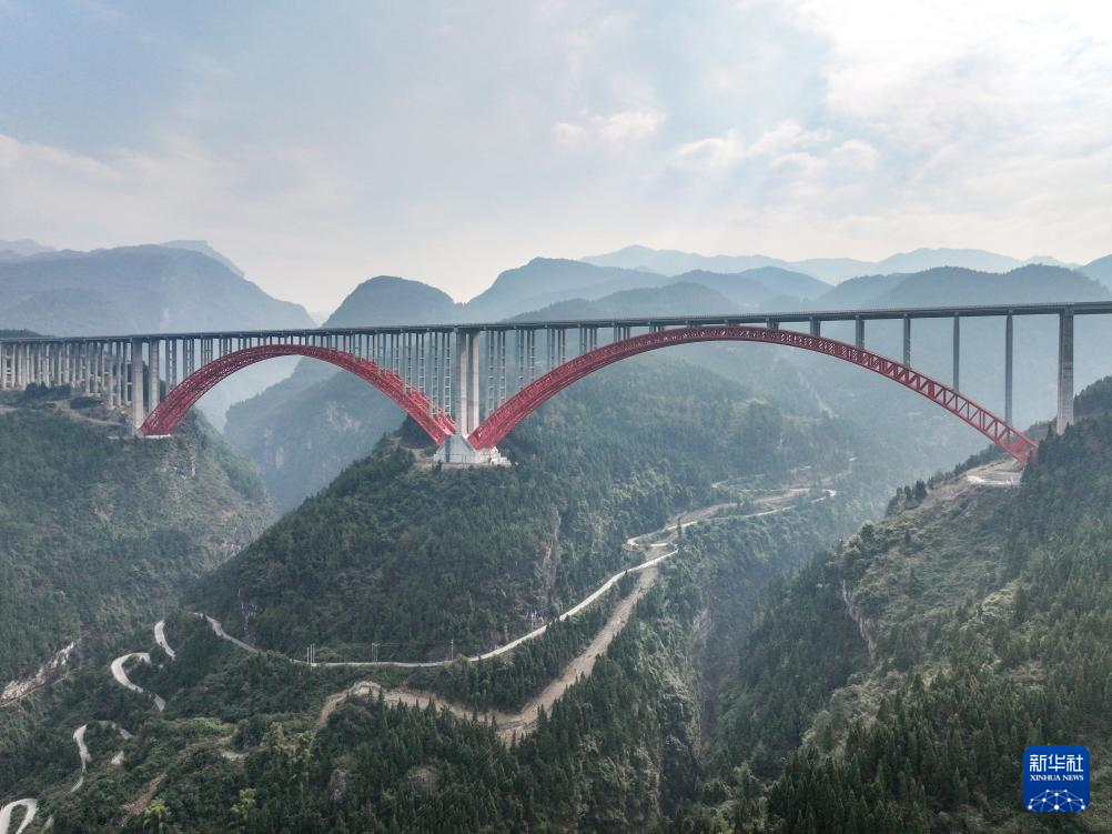 这是1月1日拍摄的渝湘复线高速公路磨寨乌江特大桥(无人机照片)。