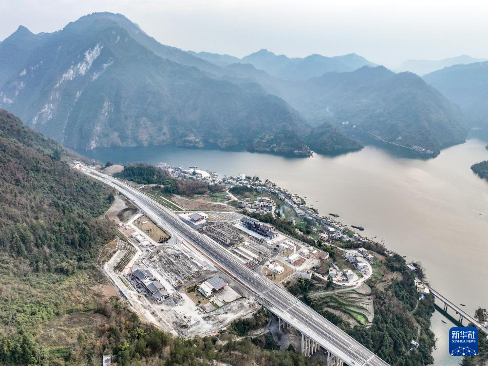 1月2日,车辆行驶在新开通的渝湘复线高速公路上(无人机照片)。