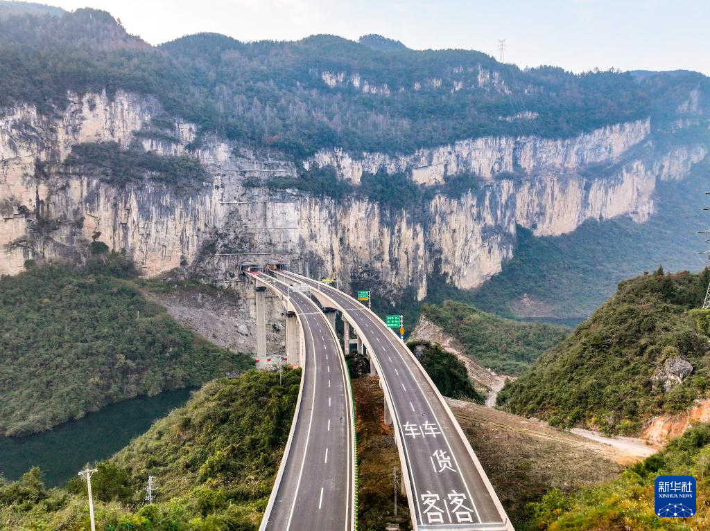 这是1月1日拍摄的渝湘复线高速公路(无人机照片)。