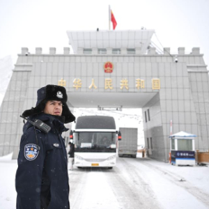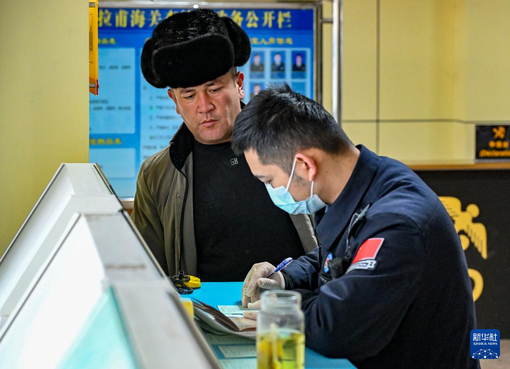 1月2日,红其拉甫出入境边防检查站民警在红其拉甫口岸值守。