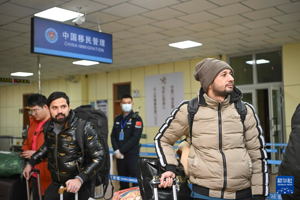 1月2日,出境人员在红其拉甫口岸联检大厅等候验放通行。