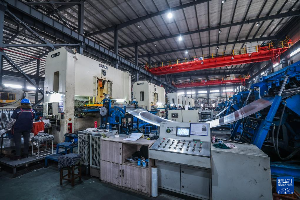 1月2日,在位于慈溪市新浦镇的宁波神马集团有限公司车间,自动化生产线在生产铜铝共晶板。铜铝共晶板可应用于电力、电气、太阳能光伏、新能源汽车等多个领域。