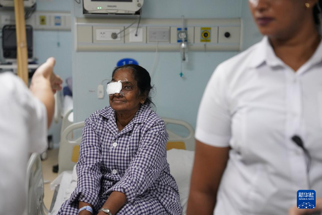 这是2024年12月24日在斯里兰卡科伦坡港停靠的中国海军“和平方舟”号医院船上拍摄的刚进行完白内障手术的本地患者。