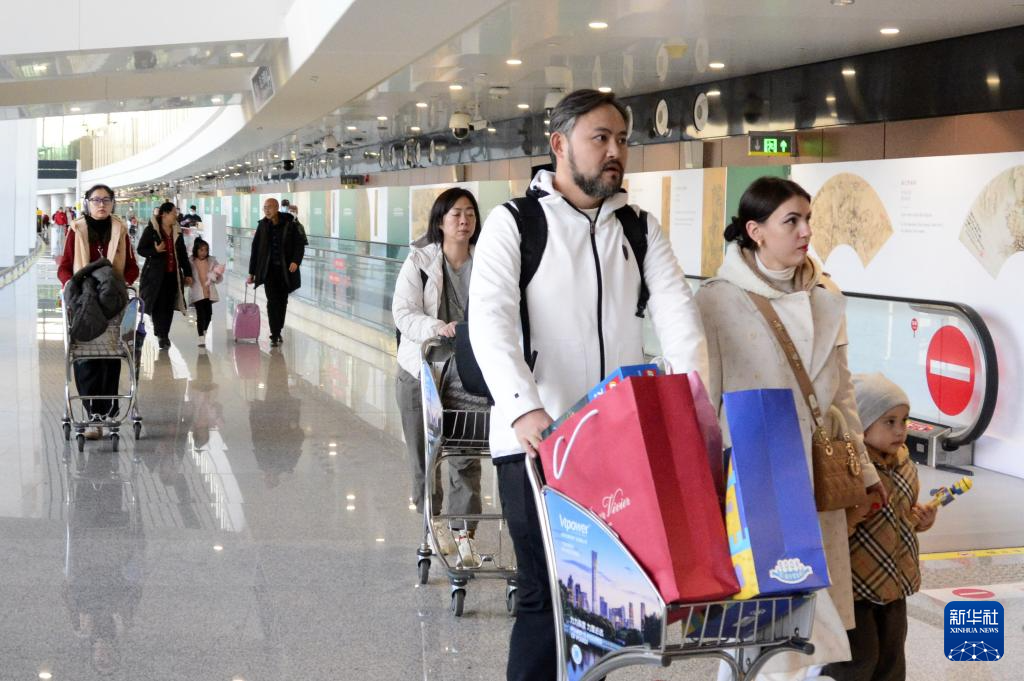 1月2日,中外旅客准备通过大兴机场边检站入境。
