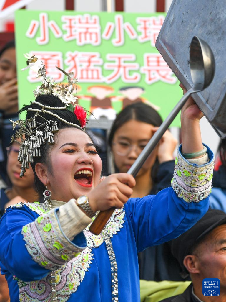 1月4日,人们在“村超村晚”活动中表演非遗节目“多耶”。