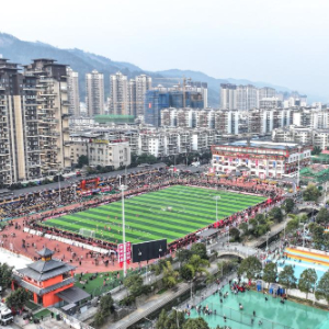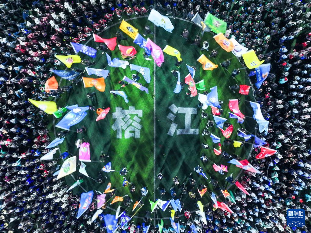 这是1月4日拍摄的“村超”揭幕战现场(无人机照片)。