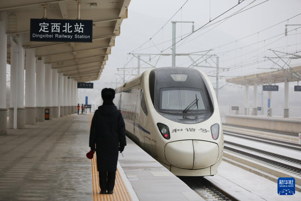 1月4日,一列高铁列车驶出宝兰高铁甘肃定西北站。