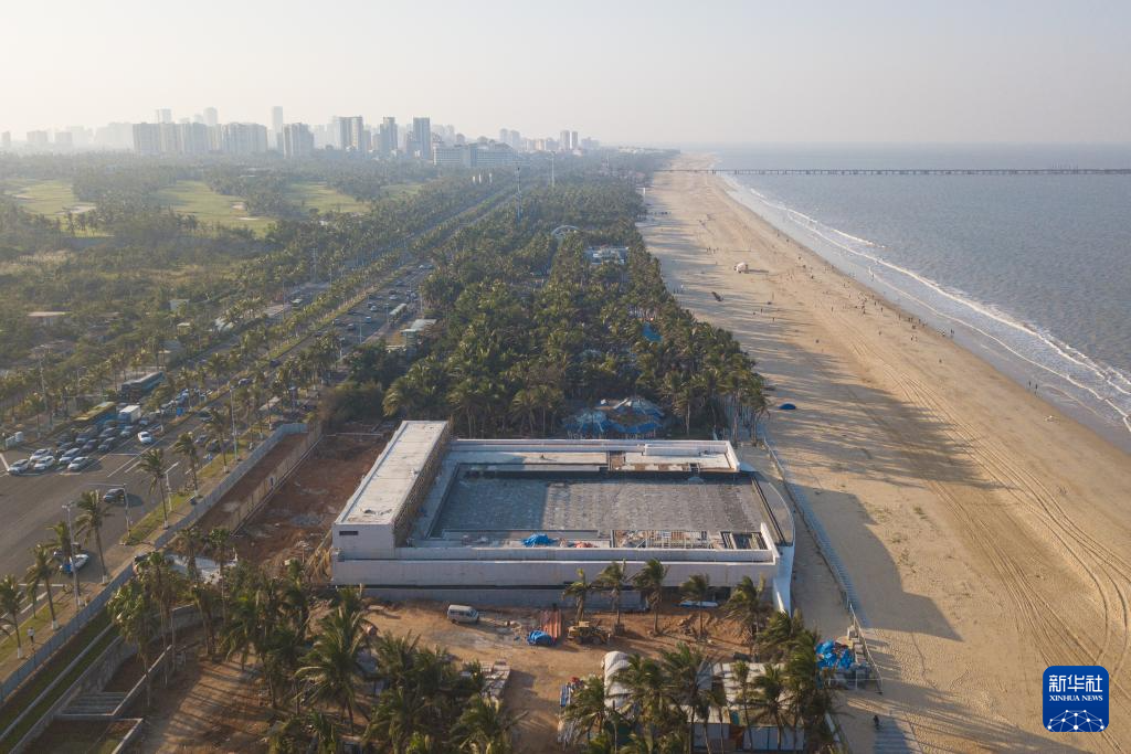 1月3日在海口拍摄的建设中的天迹泳池项目和西海岸景色(无人机照片)。