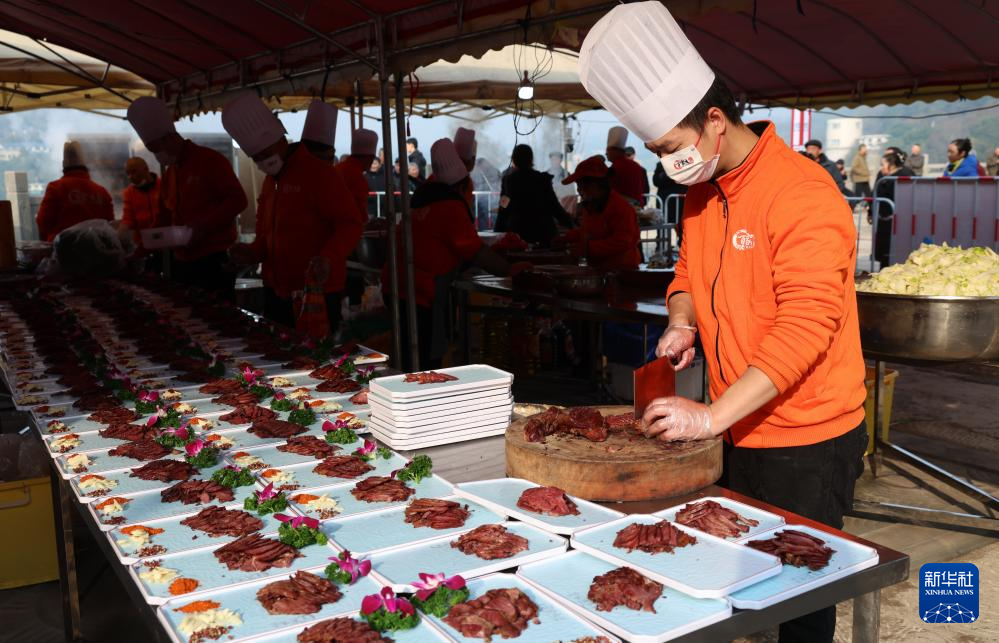1月5日,在武胜县沿口古镇,厨师在准备庖汤宴。