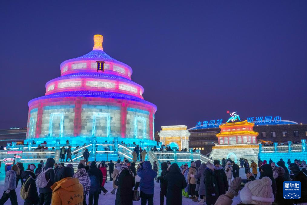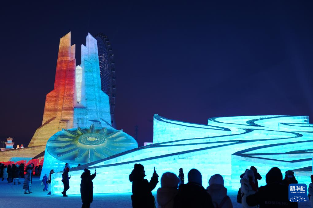 1月5日,在哈尔滨冰雪大世界园区,人们观看第41届中国·哈尔滨国际冰雪节开幕式。