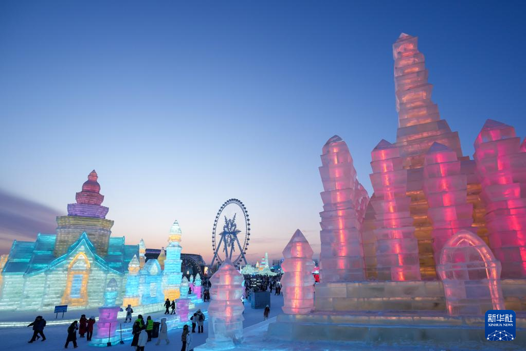 这是1月5日拍摄的哈尔滨冰雪大世界园区景观。