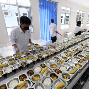 1月6日,工作人员在印度尼西亚梭罗准备营养餐。