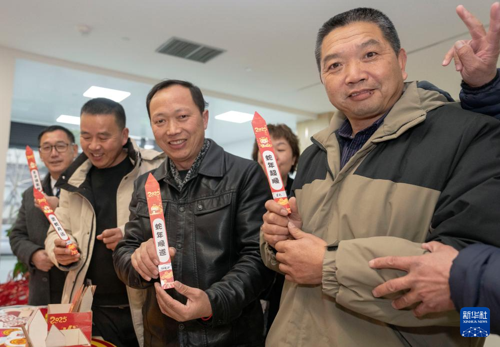 1月7日,在浙江省宁波市北云飞创现代产业园内举办的“温暖携手 畅行一路”送温暖共吃团圆饭活动上,货车司机抽取小礼品。