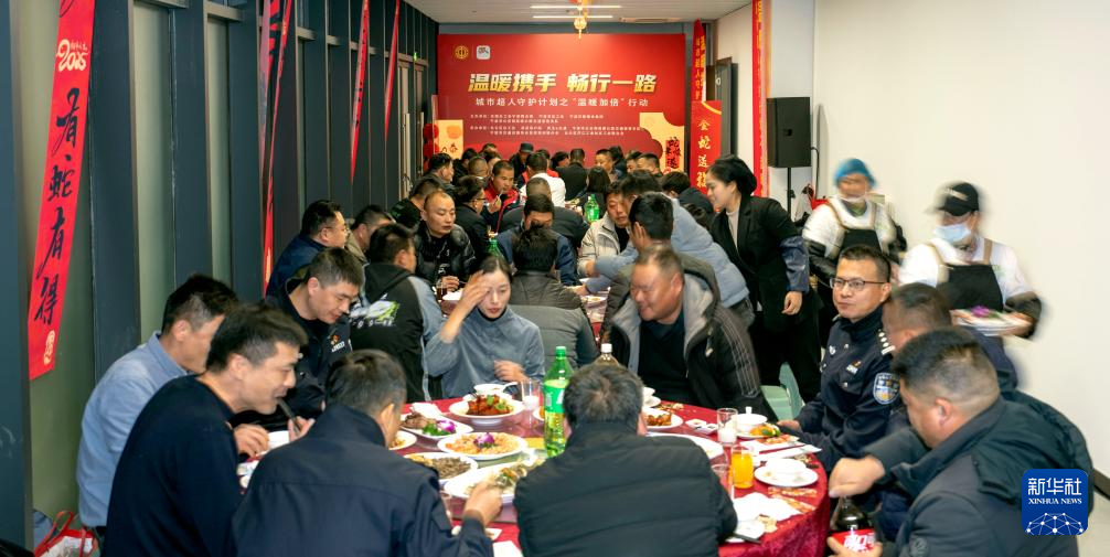 1月7日,在浙江省宁波市北云飞创现代产业园内举办的“温暖携手 畅行一路”送温暖共吃团圆饭活动上,宾客共吃团圆饭。