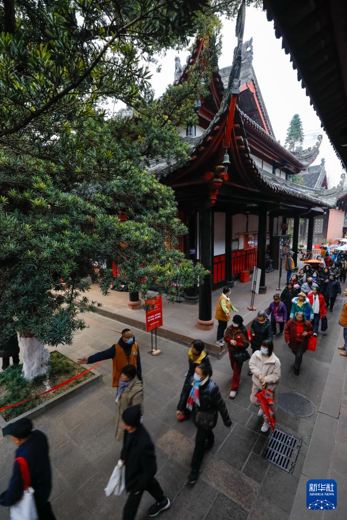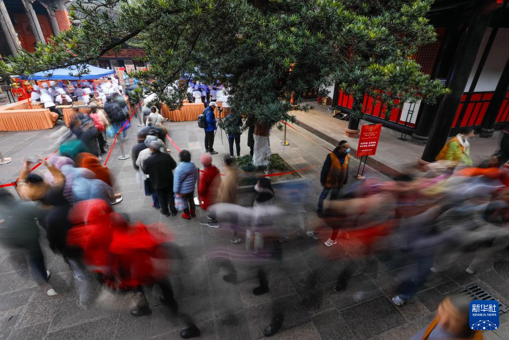 1月7日,人们在四川省成都文殊院排队领取免费的腊八粥。