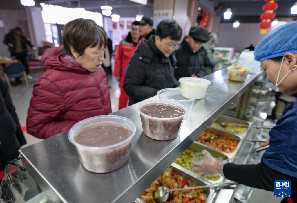 1月7日,宁夏银川市金凤区长城花园社区食堂为居民准备了免费的腊八粥。