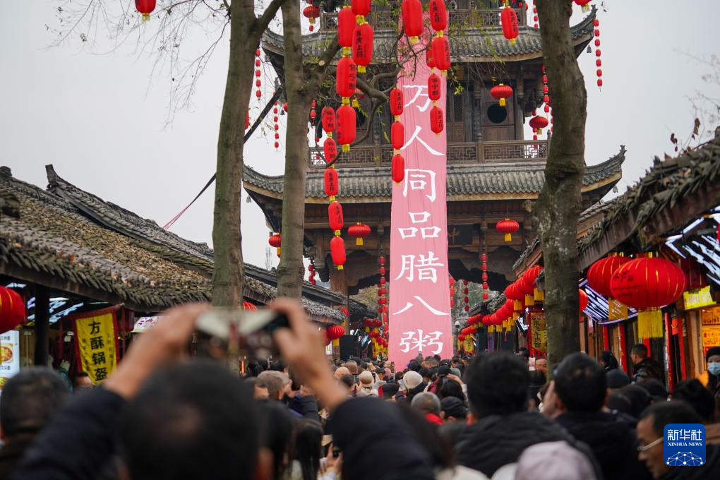 1月7日在阆中古城拍摄的“万人同品腊八粥”活动。