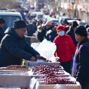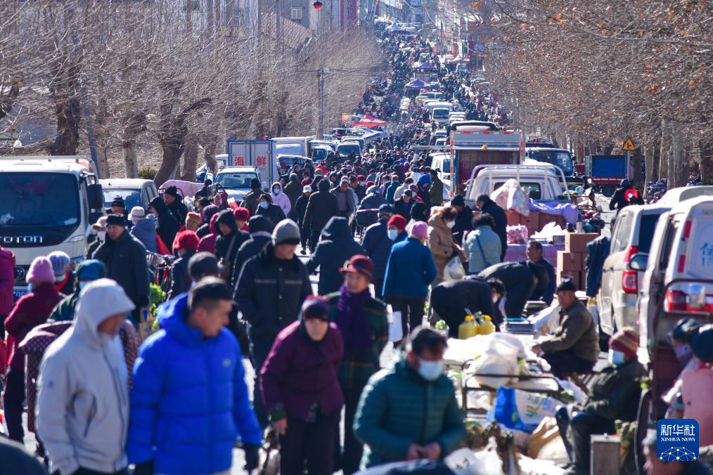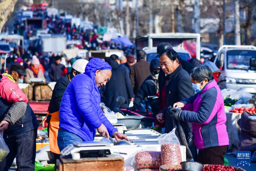 当日,地处鲁中山区的山东省淄博市博山区石马镇迎来传统腊月大集,琳琅满目的商品吸引了周边村镇居民前来采办年货。