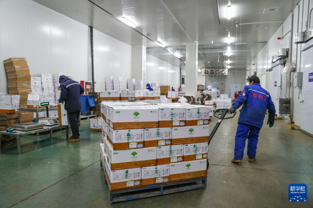 1月8日,在庆阳市环县一家羊肉加工企业生产车间,工作人员转运羊肉准备发货。