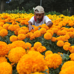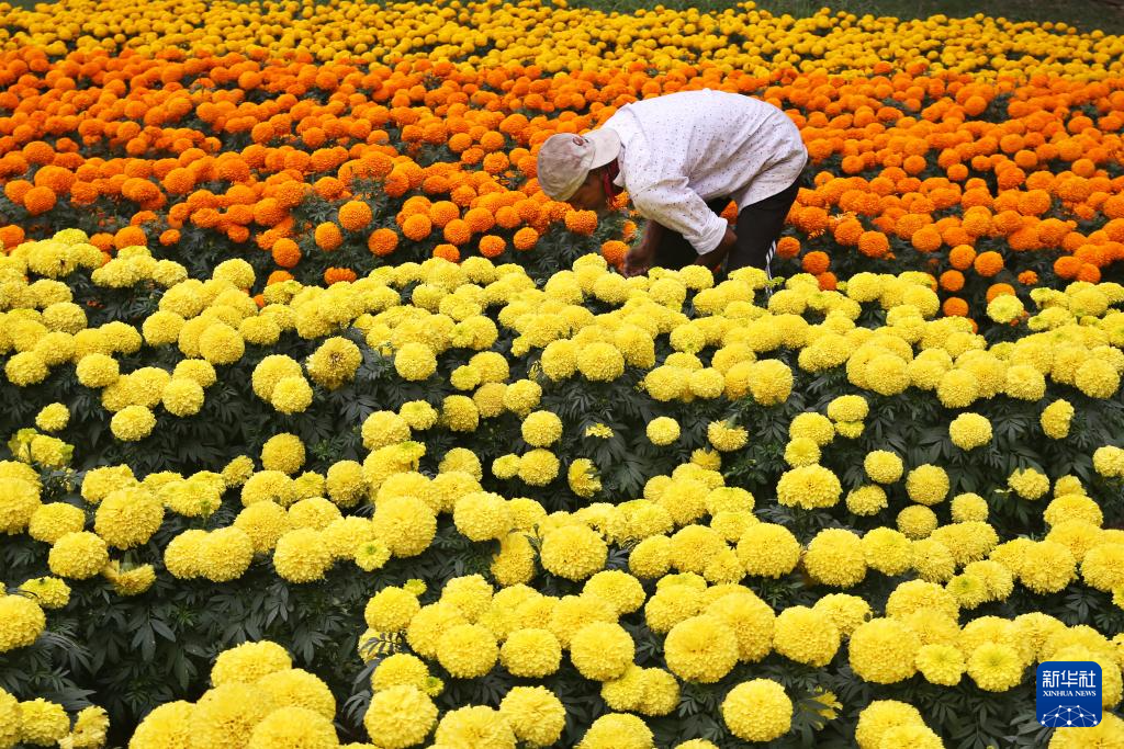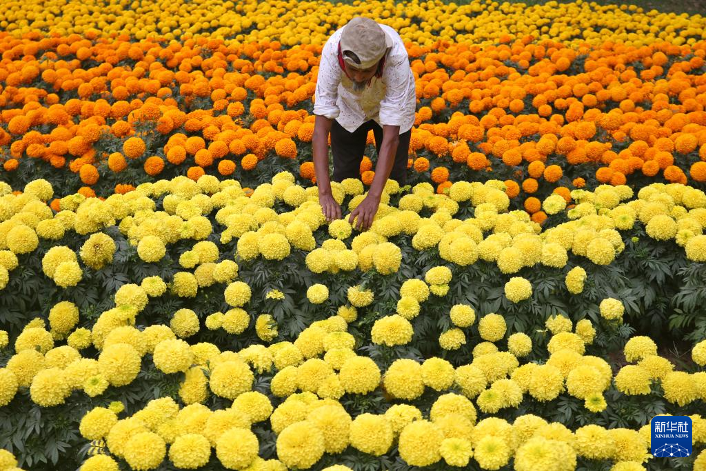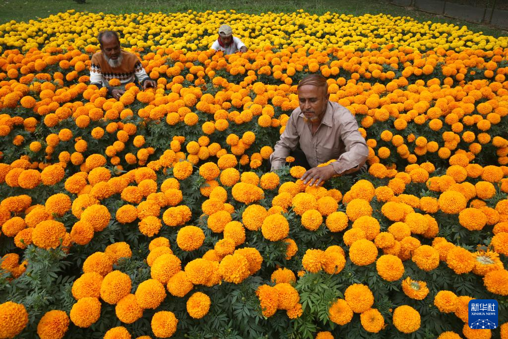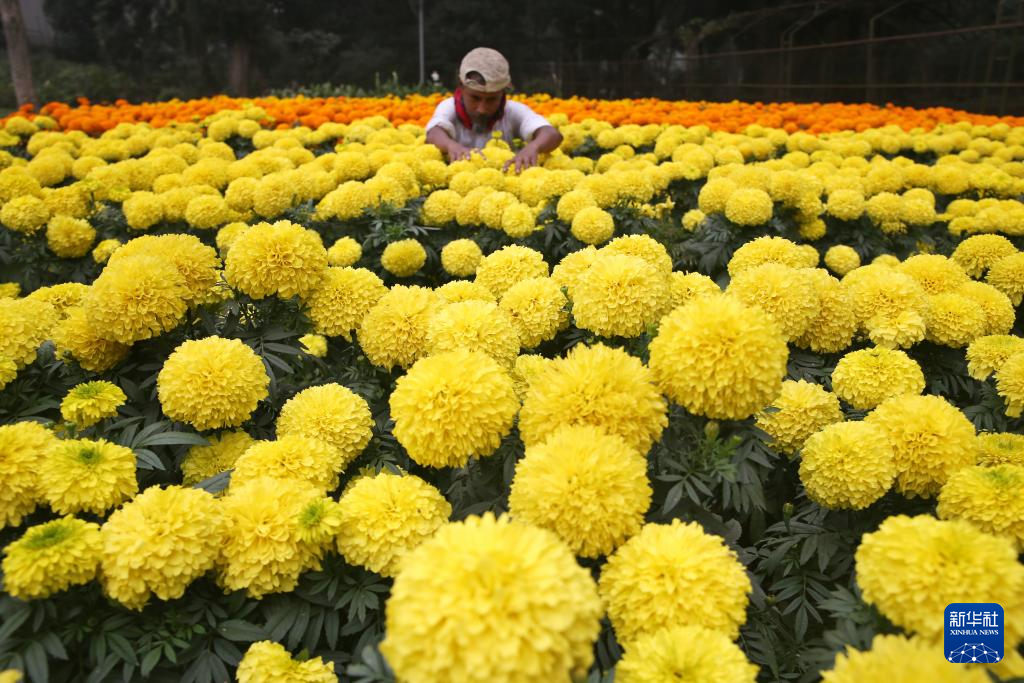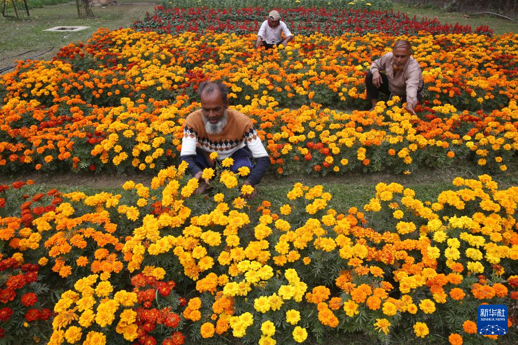 1月8日,孟加拉国首都达卡一座公园的工作人员照料盛开的花朵。