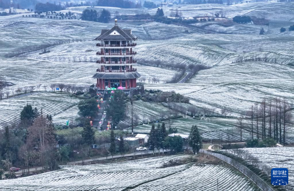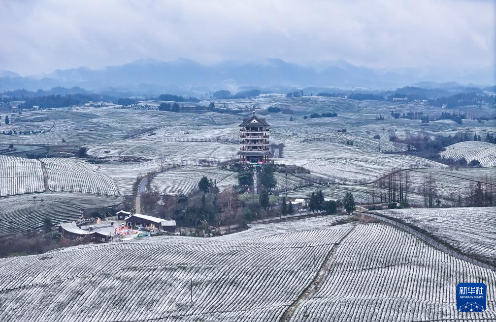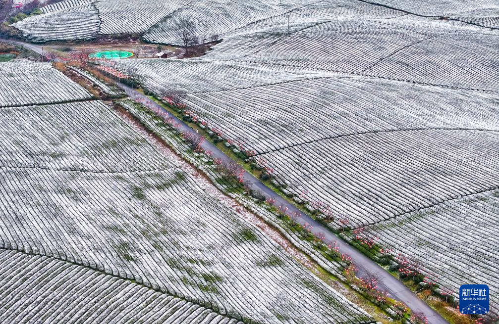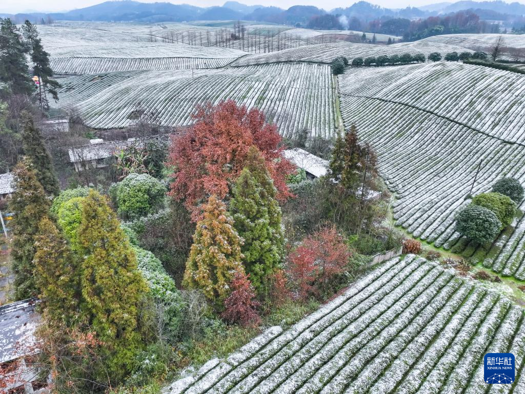当日,位于贵州省遵义市湄潭县的万亩茶海迎来降雪,茶园被白雪覆盖,别有韵味。