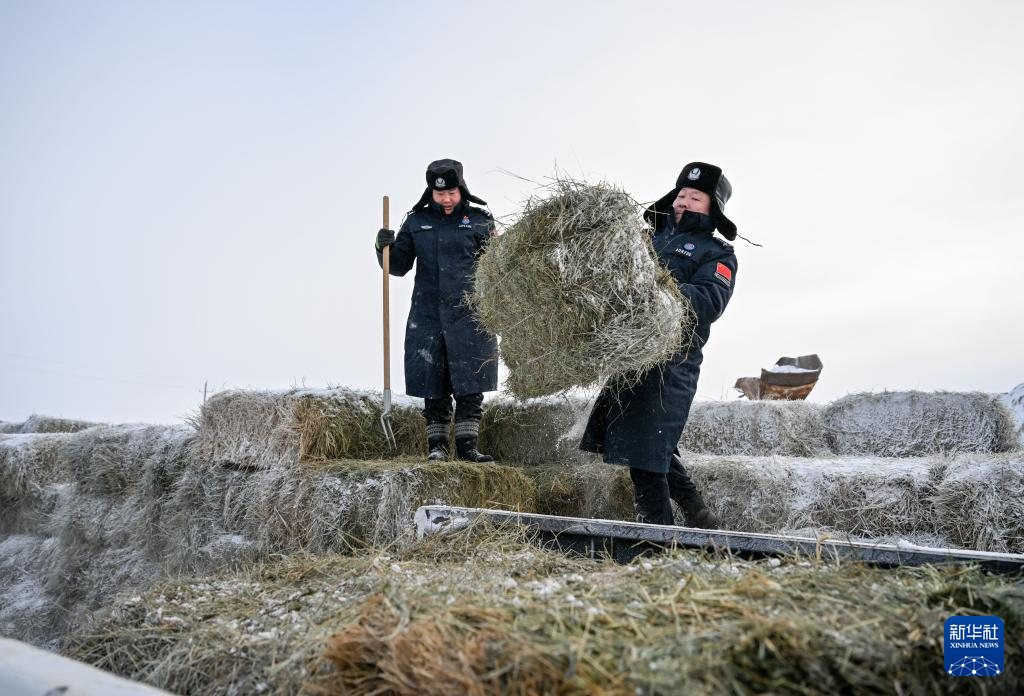 2024年12月27日,马背警队的民警们准备给马匹饲喂草料。
