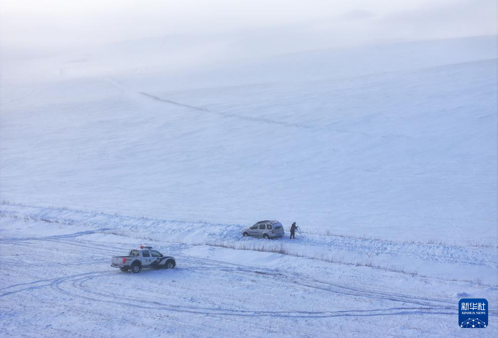 2024年12月27日,接到群众求助后,马背警队和舍伯尔图边境派出所的民警第一时间来到群众受困地点(无人机照片)。