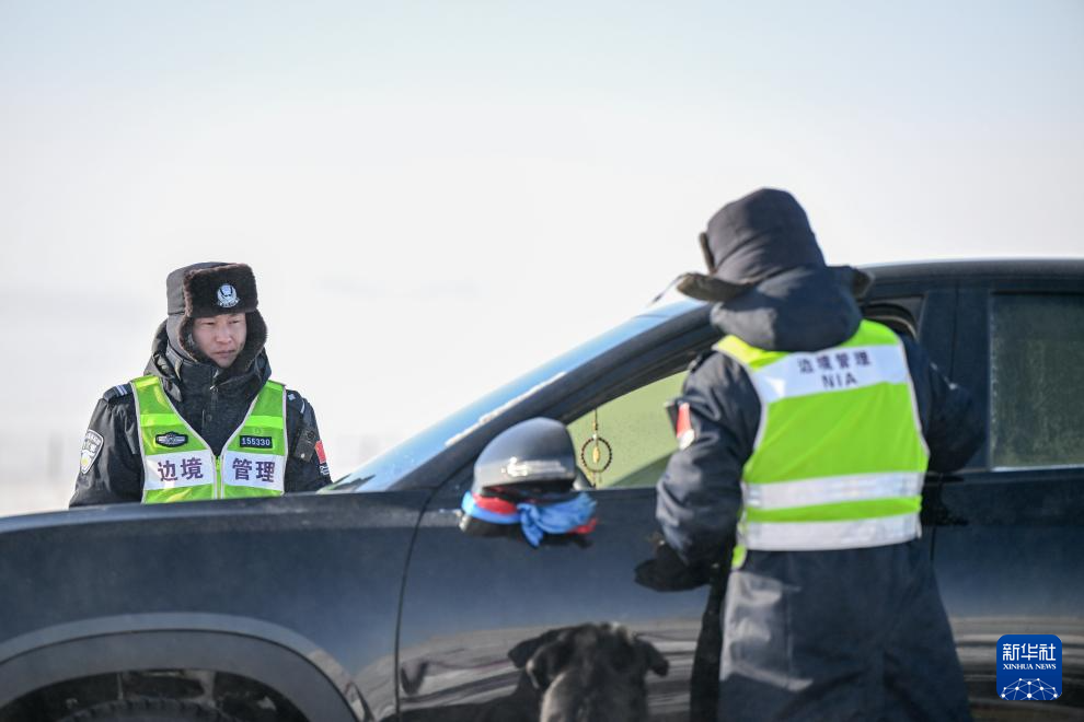 2025年1月8日,马背警队的民警张柏何(左)和陈子渊去检查站执勤。