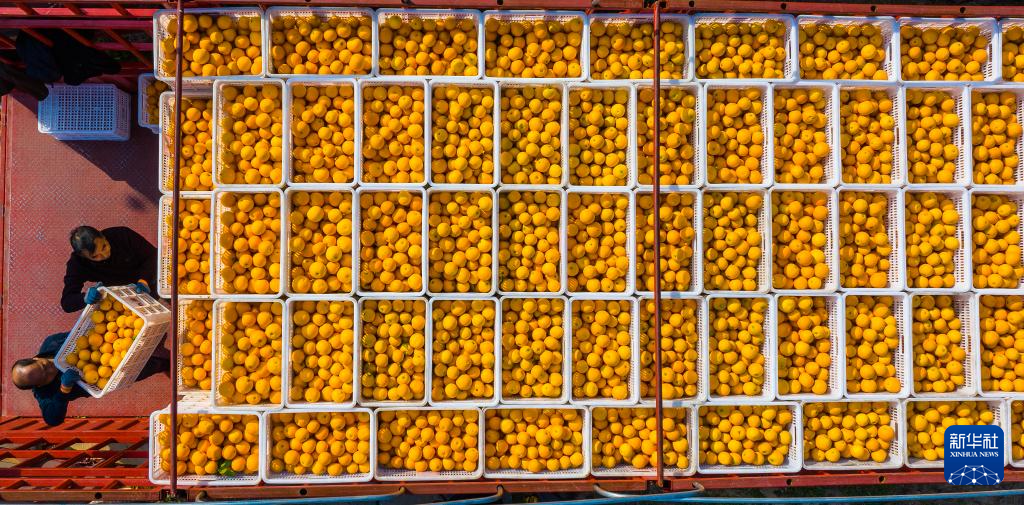 眼下,湖北省宜昌市秭归县的冬季脐橙进入销售旺季,果农加紧采收、转运、分拣、包装,通过电商销往全国各地。