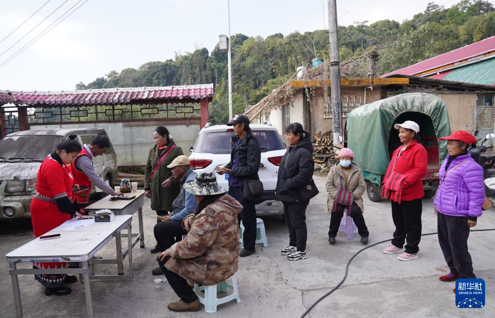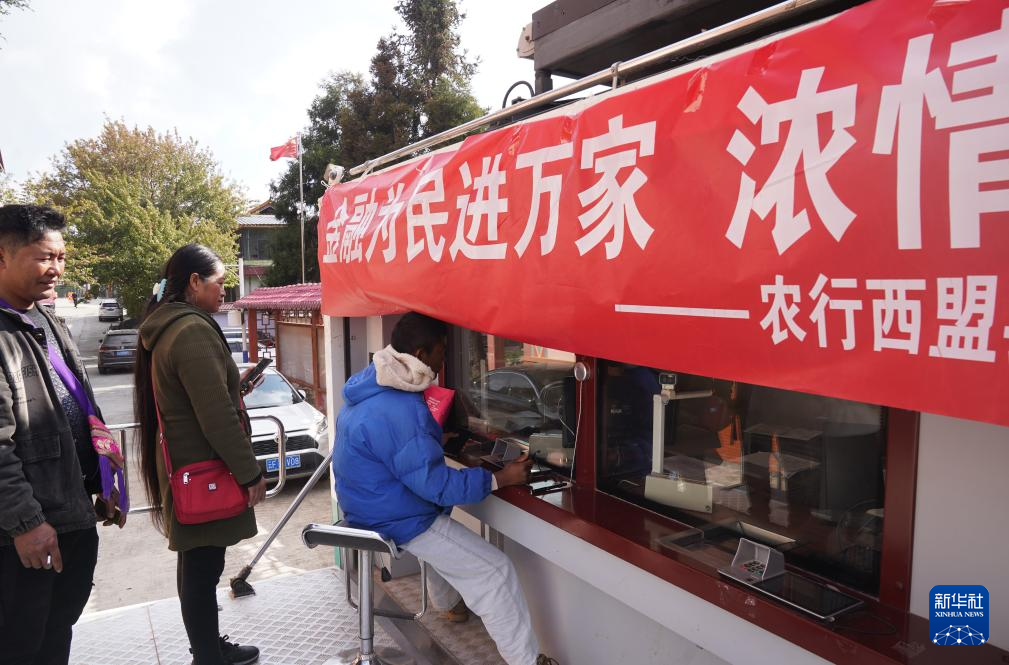 1月10日,在云南省西盟佤族自治县勐卡镇西盟村,金融机构服务人员为佤族群众办理业务。