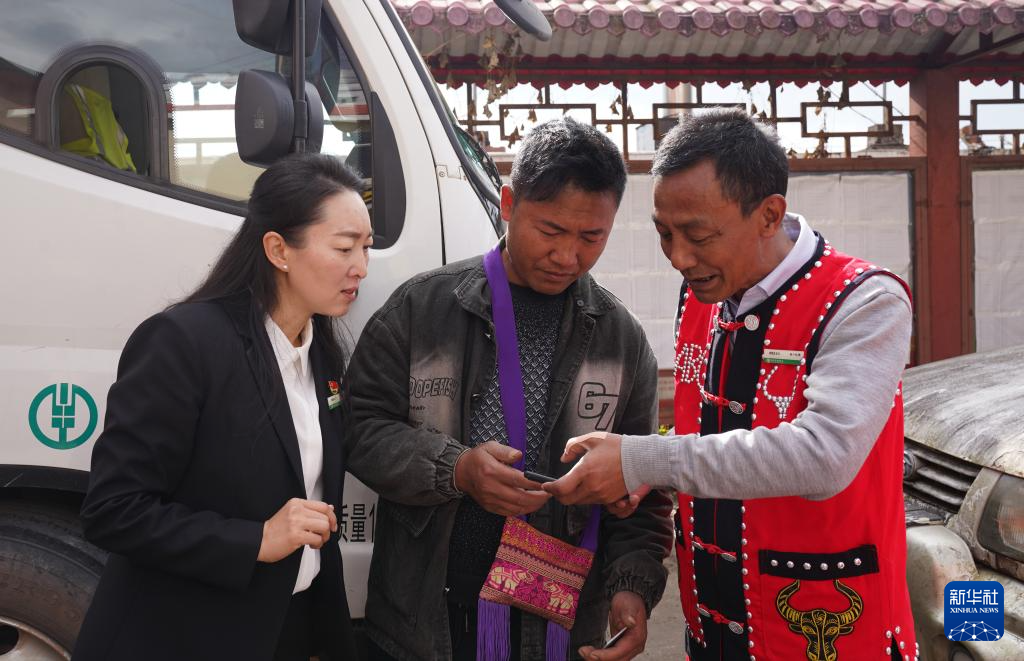 1月10日,在云南省西盟佤族自治县勐卡镇西盟村,金融机构服务人员引导佤族群众通过手机银行自助办理业务。