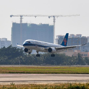 当日13时32分,搭载112名旅客的CZ6744(广州-三亚)航班平稳降落三亚凤凰国际机场,标志着国产大飞机C919在三亚的首次商业飞行顺利完成,这是南航首次使用C919飞机执行广州-三亚航线航班。
