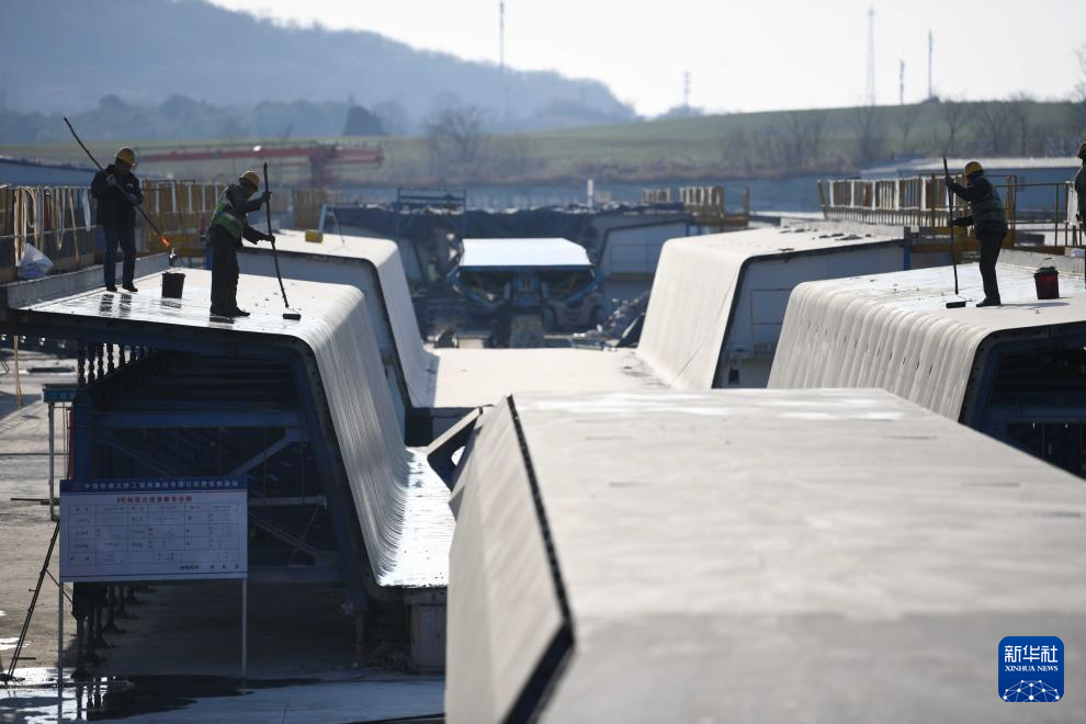 1月10日,施工人员在中国铁建大桥局肥东制梁场生产箱梁。
