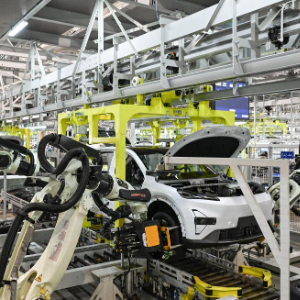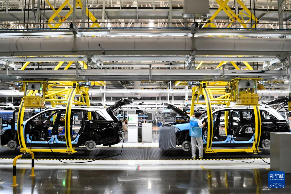 在四川省宜宾市宜宾凯翼汽车有限公司焊装车间,自动机械臂在对新能源车辆进行焊装(2024年3月22日摄)。四川省宜宾市是成渝地区双城经济圈的重要组成部分之一。