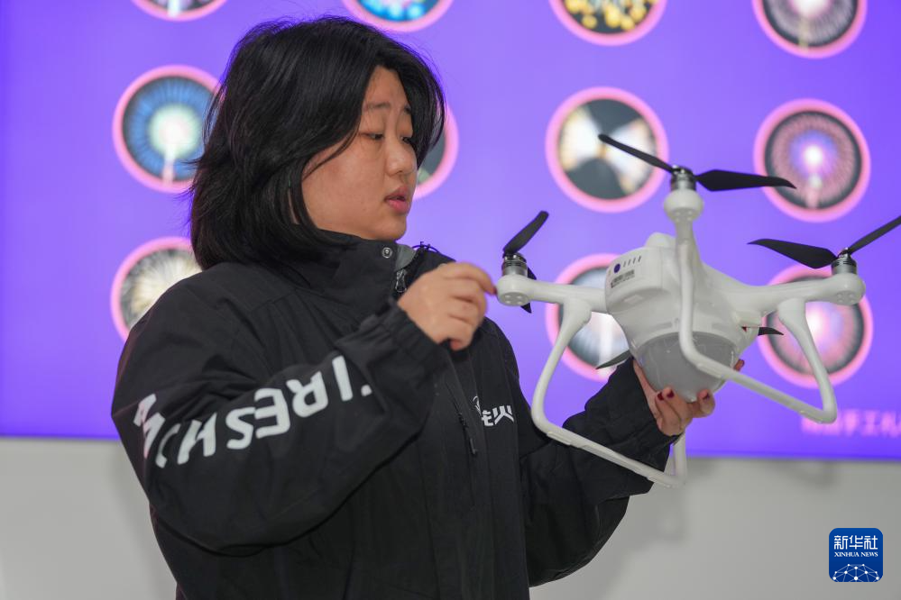 在湖南省浏阳市一家烟花创意设计公司,工作人员在介绍可搭载烟花的无人机(1月7日摄)。