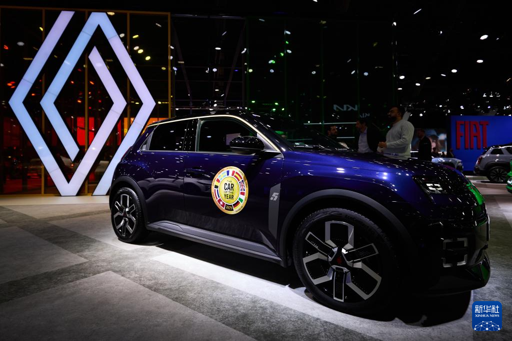 这是1月10日在比利时布鲁塞尔举办的2025布鲁塞尔车展上拍摄的雷诺R5汽车。
