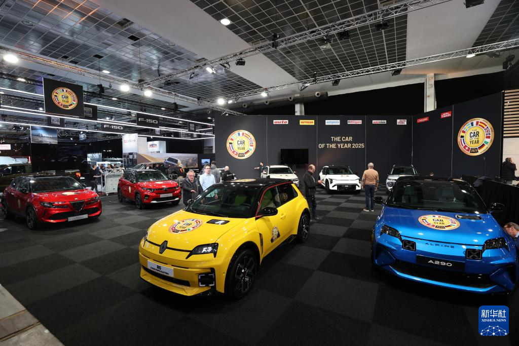 1月10日,在比利时布鲁塞尔举办的2025布鲁塞尔车展上,观众参观2025年度汽车。