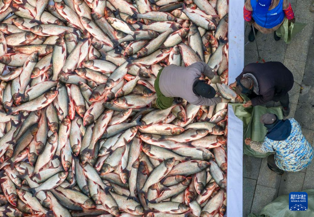 当日,江苏省泰州市姜堰区溱湖冬捕节开幕,湖区水域呈现出一派鱼跃人欢的丰收景象。