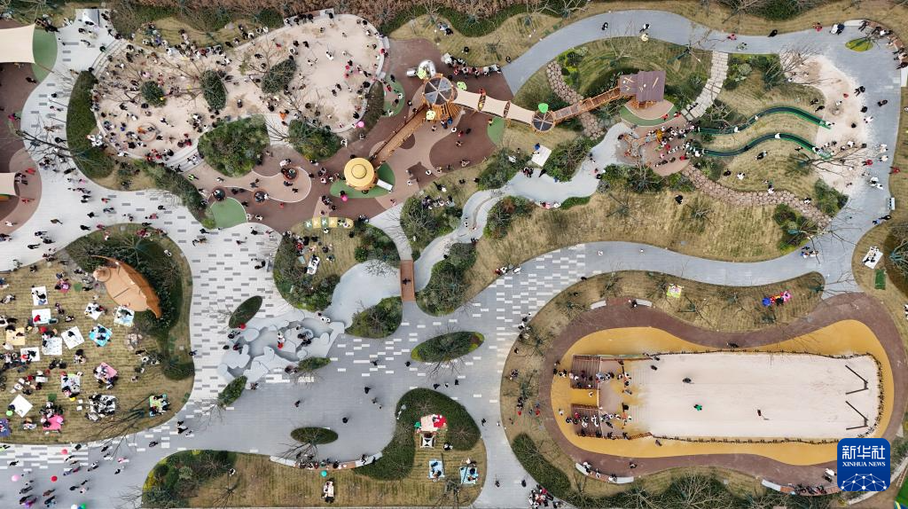 1月5日,人们在位于成都天府新区的卡皮巴拉主题乐园玩耍(无人机照片)。