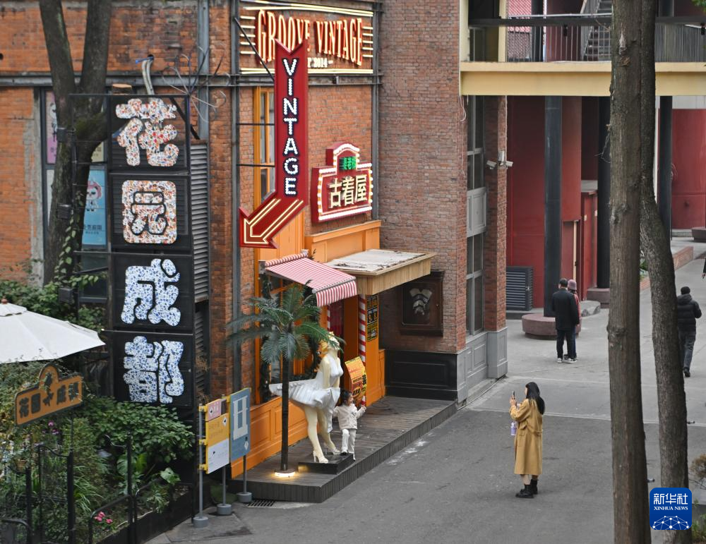 1月10日,市民在成都东郊记忆商圈游览。