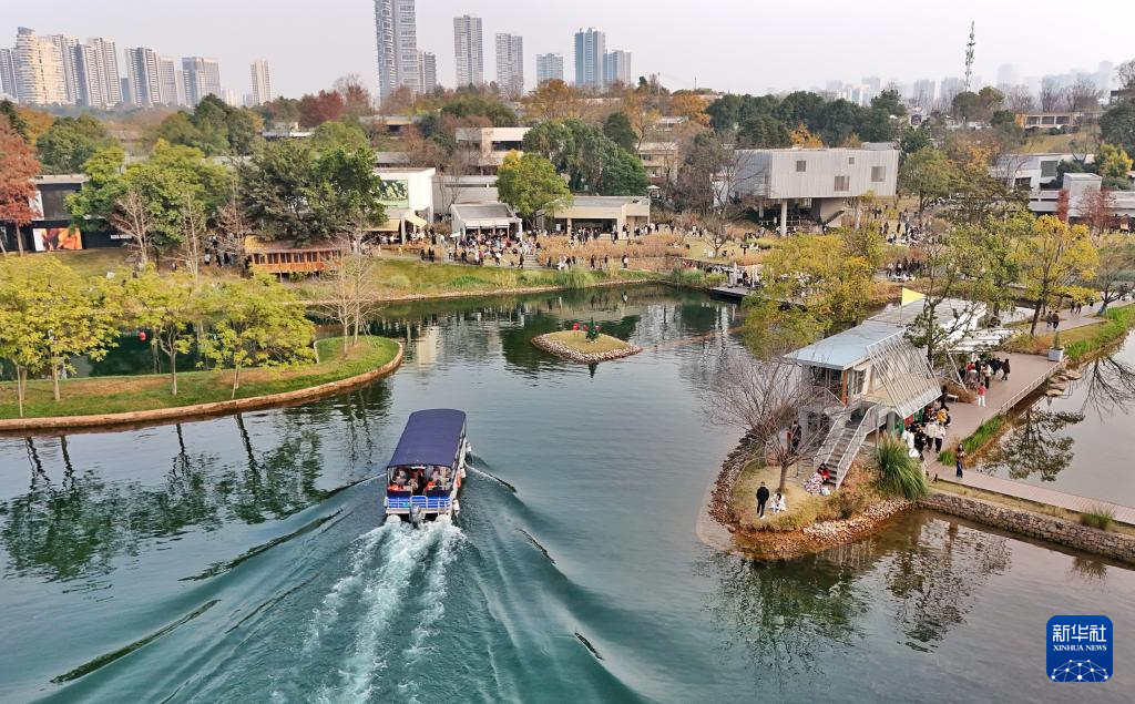 1月1日,人们在成都天府新区麓湖CPI项目内游览。