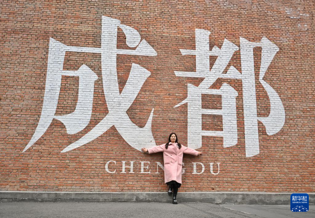 1月10日,市民在成都东郊记忆商圈打卡拍照。