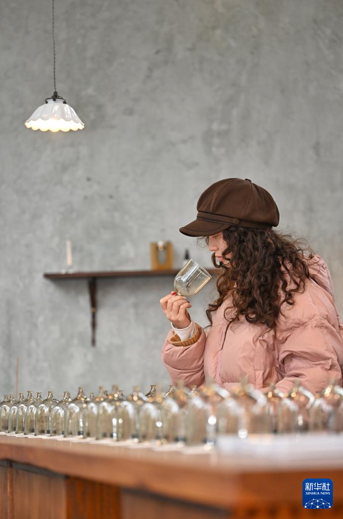 1月8日,市民在成都天府新区麓湖CPI项目一家香薰店内体验。